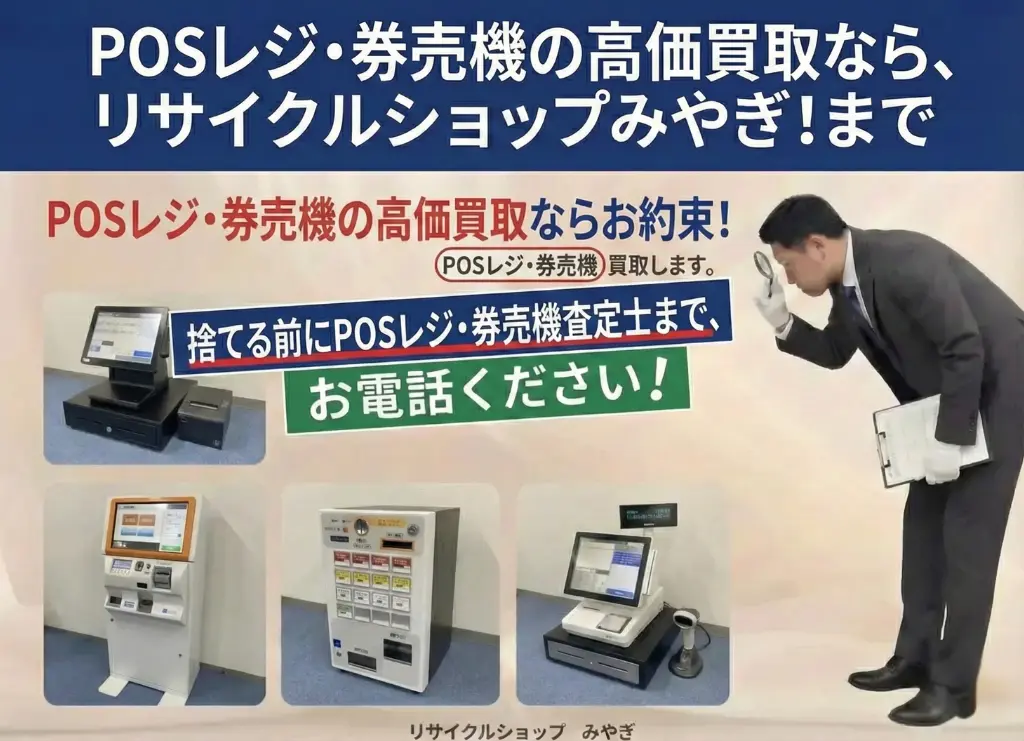 仙台市を中心に、宮城県全域でPOSレジ・券売機の出張買取に対応しています。